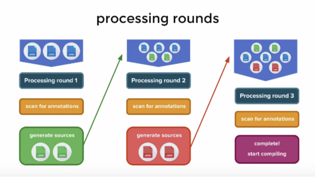 4. 컴파일러가 모든 어노테이션이 수행됬는지 보고, 그렇지 않으면 위 작업을 반복